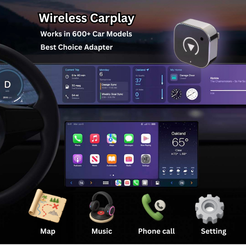 Compatible with most factory-wired CarPlay systems—simply plug it into your car’s USB port and connect in under 10 seconds.